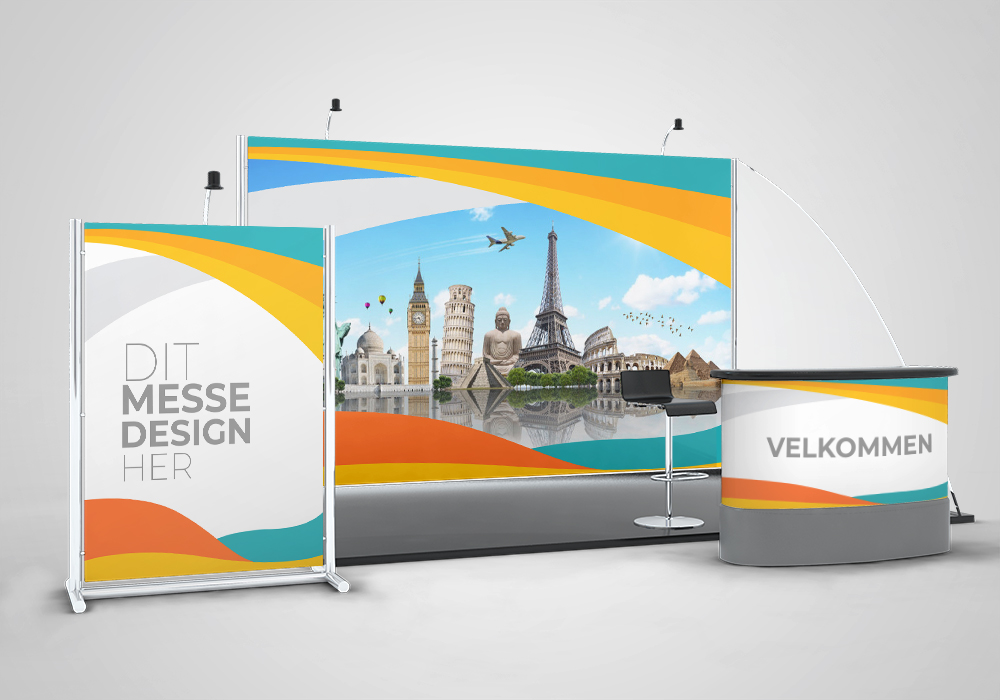 Få en professionel messestand med alt fra bannere og diske til messevægge og brochurer. Vi sammensætter jeres visuelle udtryk, så det skiller sig ud – og kan pakkes sammen igen på ingen tid.